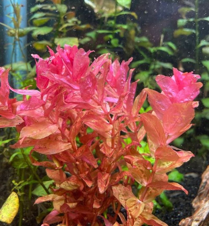 La Rotala macrandra es una de las plantas rojas más bonitas de acuario, originaria de la India, en acuario se